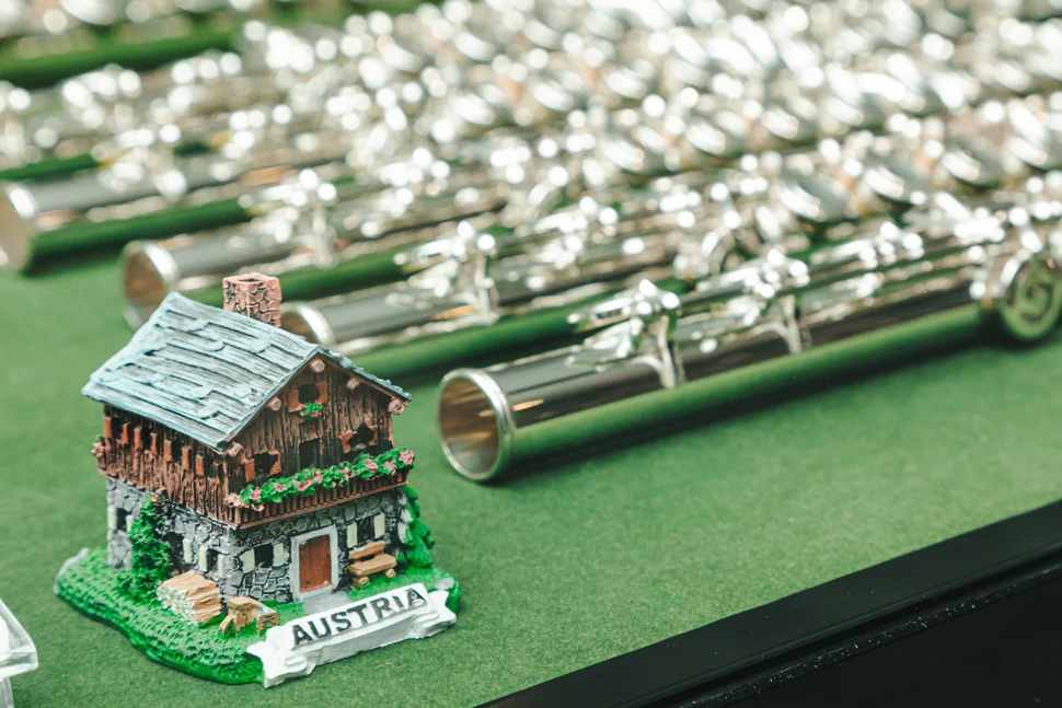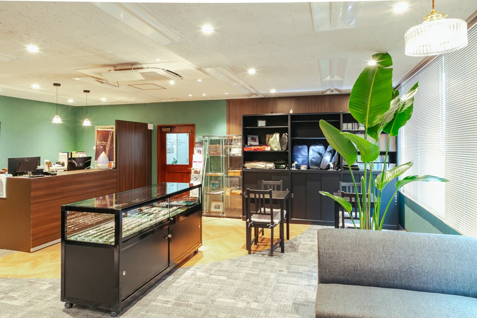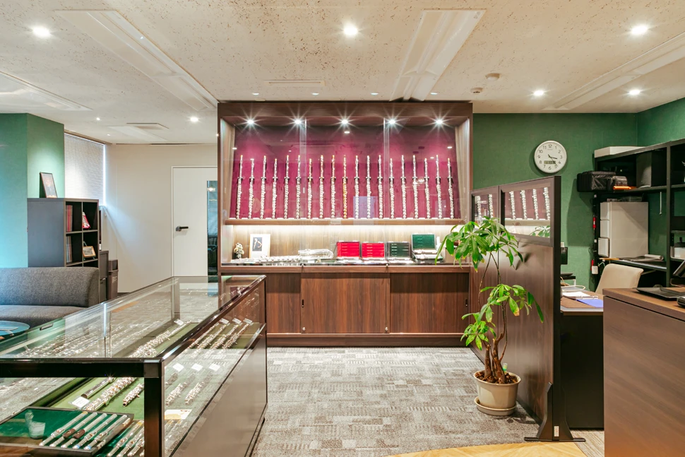 従来の事務所をコンパクト化し、最大6席のデスクを確保しながら、お客様対応スペースを拡張。フルートや関連アイテムを効率的に展示できるショールームへと生まれ変わりました。展示数を増やし、ストックを最適化することで接客の利便性も向上。天井にはスポットライトを設置し、エンターテインメント性もプラスしました。限られた予算の中で既存家具を活用しつつ、機能性とデザイン性を両立した空間を実現しました。