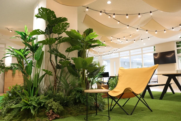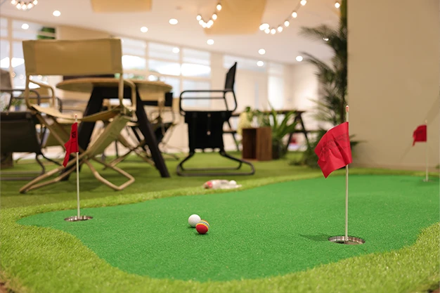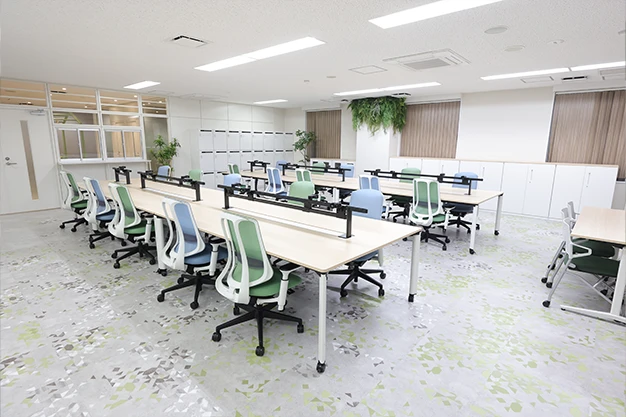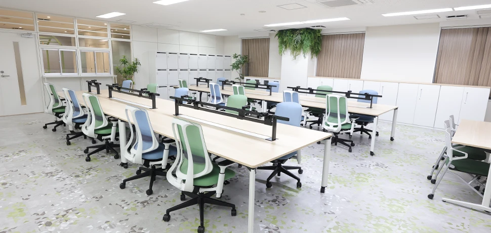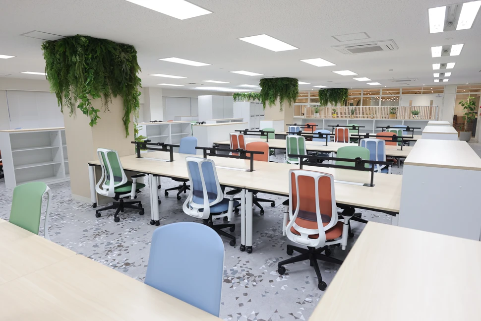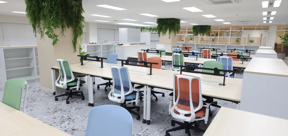 古くて狭いオフィスから脱却し、国内最大級の原油処理能力を誇るENEOSの旗艦製油所にふさわしい職場へとリニューアル。重要拠点としての誇りを高めつつ、一人ひとりが最大限能力を発揮できる環境を整えました。コンセプトは「I’m home」。やさしい色合いやグリーンを取り入れた執務エリアに加え、夕暮れのような光に包まれるコワークエリアやパターゴルフができる交流スペースも設置。心地よく、いきいき働ける空間に生まれ変わりました。