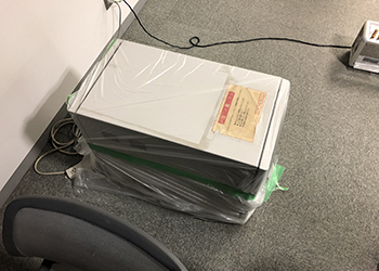 霧を充満させるため湿気に弱そうな精密機器はしっかりと養生していきます。