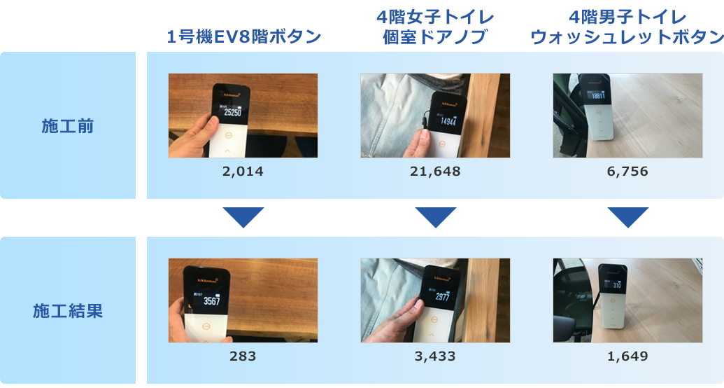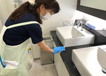 東京都港区にある芝フロントビルにオフィスを構えるグローブシップ様とアトックス様。今回ビル内のトイレやエレベーターなどの共用部の施工を共同で行われました。働き方としてはテレワークを推進されているものの、出社する必要がある社員の安心のために手洗いなどの通常の対策に加えてデルフィーノを施工頂きました。