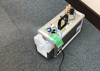 機材を各所にセットし、デルフィーノ液を噴射していきます。