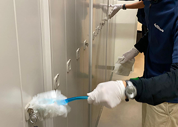 ロッカーもコーティングします。デルフィーノ液が充満して白く曇ってきています。