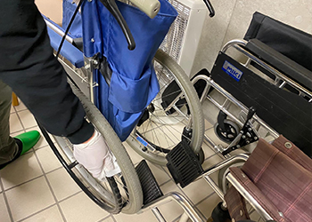 車椅子も個別にデルフィーノ液を吹きかけて施工していきます。