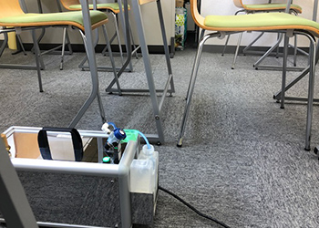 デルフィーノ液を噴霧し、教室全体に施工します。