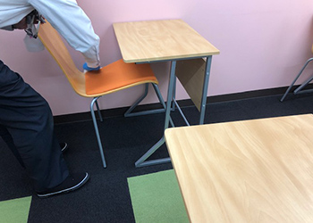 日々の感染症対策にプラスして、生徒さんが使用する机や椅子・居室へデルフィーノでの抗菌・抗ウイルスを実施しました。