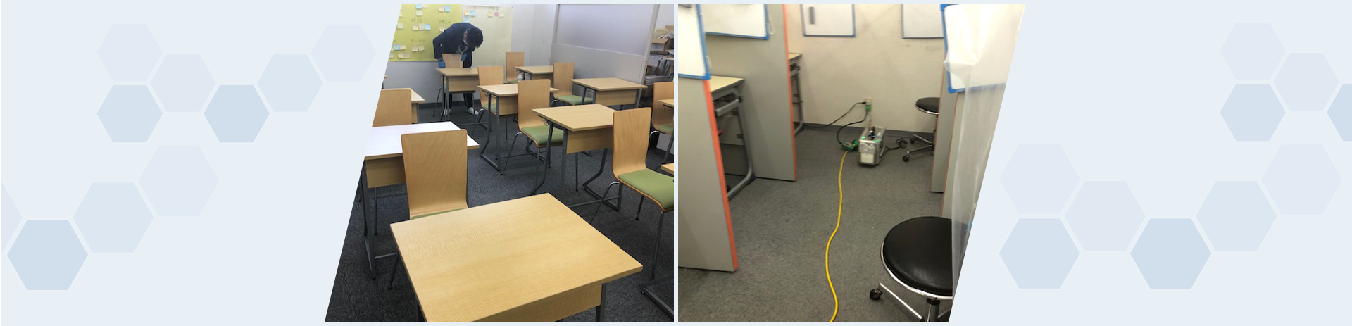 個別指導の学習塾を運営していて、授業は対面式での実施となります。毎日清掃をして感染症の対策はしていますが、生徒さんが座る机や椅子など対策をしていても気になります。特に昨年の4月は緊急事態宣言を受けての休校対応をしていたので、継続して生徒さん、保護者様により安心して通塾いただくために導入に至りました。
