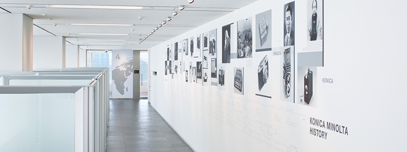 会議室スペースの壁には、コニカミノルタの歴史が写真で掲載されています。