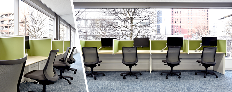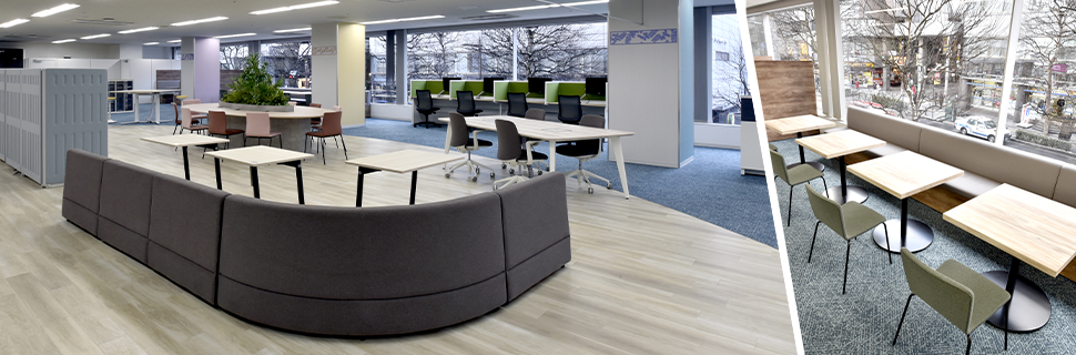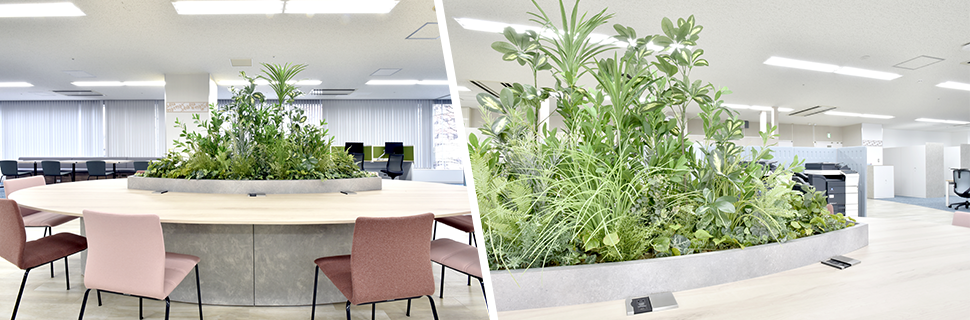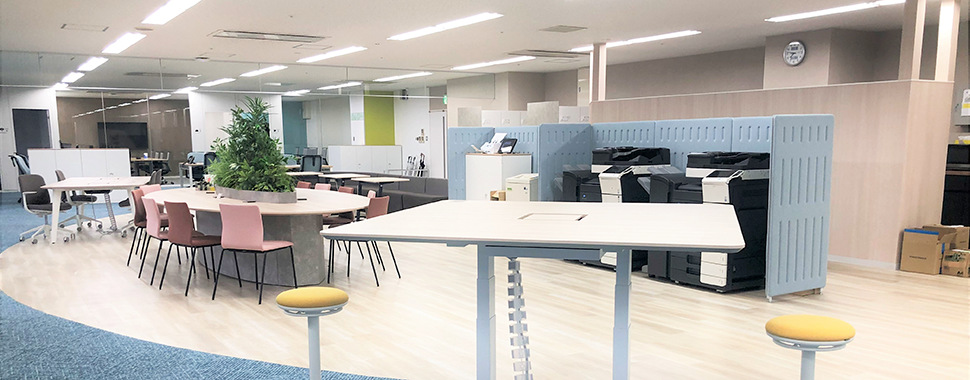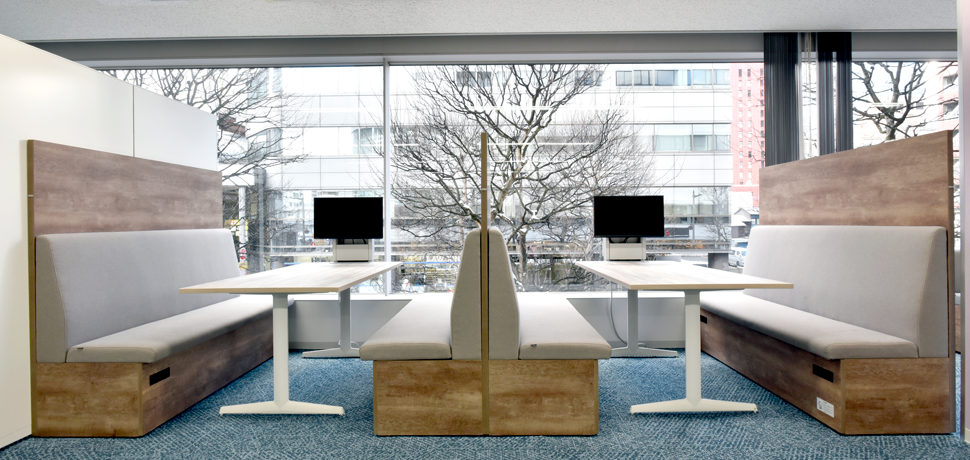 仙台オフィスでは、家具の配置やインテリアに変化を与えることで