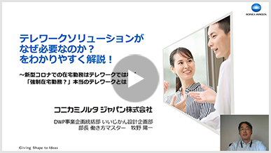 新型コロナ対策として、テレワーク(在宅勤務)をはじめとする「新しい働き方」への移行が加速度的に進んでいます。コニカミノルタでも、このウィズコロナ・ニューノーマル時代に対応した新しい労働環境の構築や、業務の見直しに取り組んでいます。
