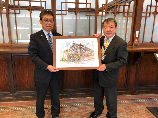 浜松町・芝・大門マーチング委員会では、2020年4月1日に港区芝浦にオープンした「伝統文化交流館」のイラストを3月26日に寄贈させていただきました。