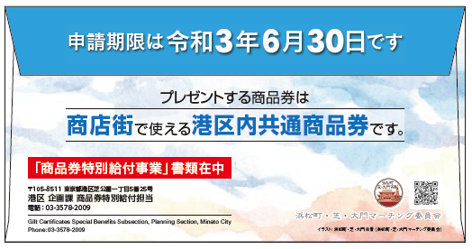 港区企画課が発行した「商品券特別給付事業」のお知らせ封筒の表紙デザインに当委員会所有の百景イラストが採用されました トップ浜松町・芝・大門マーチング委員会とは浜松町・芝・大門百景赤坂・六本木百景オリジナルグッズ浜松町・芝・大門マーチング委員会の活動報告イベントのご紹介お問い合わせニュース・お知らせ一覧 浜松町・芝・大門マーチング委員会では、港区企画課が発行した低所得者向け「商品券特別給付事業」のお知らせ封筒の表紙デザインに当委員会所有の百景イラストが採用されました。 浜松町・芝・大門マーチング委員会の活動報告へ戻る トップ 浜松町・芝・大門マーチング委員会とは 浜松町・芝・大門百景赤坂・六本木百景 オリジナルグッズ 浜松町・芝・大門マーチング委員会の活動報告 イベントのご紹介 お問い合わせ ニュース・お知らせ一覧