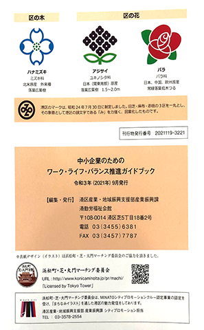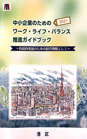 浜松町・芝・大門マーチング委員会では、港区産業振興課 港勤労福祉会館が発⾏した「中⼩企業のためのワーク・ライフ・バランス推進ガイドブック」の表紙デザインに当委員会所有の百景イラストが採用されました。