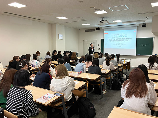 当会の日比野は、港区芝地区に本部を置く⼾板⼥⼦短期大学の国際コミュニケーション学科の学生に講義を行いました