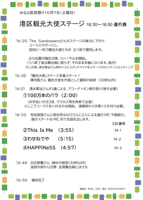 第42回みなと区民まつりに参加しました トップ浜松町・芝・大門マーチング委員会とは浜松町・芝・大門百景赤坂・六本木百景オリジナルグッズ浜松町・芝・大門マーチング委員会の活動報告イベントのご紹介お問い合わせニュース・お知らせ一覧 港区観光大使を務める当会の日比野は、10月7日(土)に開催された第42回みなと区民まつり大殿ステージでの『港区観光大使 コラボスペシャルステージ』に参加しました。 開催当日の様子 浜松町・芝・大門マーチング委員会の活動報告へ戻る トップ 浜松町・芝・大門マーチング委員会とは 浜松町・芝・大門百景赤坂・六本木百景 オリジナルグッズ 浜松町・芝・大門マーチング委員会の活動報告 イベントのご紹介 お問い合わせ ニュース・お知らせ一覧