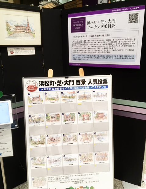 浜松町・芝・大門マーチング委員会では、港区より平成29年度「MINATOシティプロモーションクルー認定事業-C区分」を受けており、区役所本庁舎 1階ロビーにおいて、当会の取組み概要と百景イラストの展示をご紹介いただけることになりました。