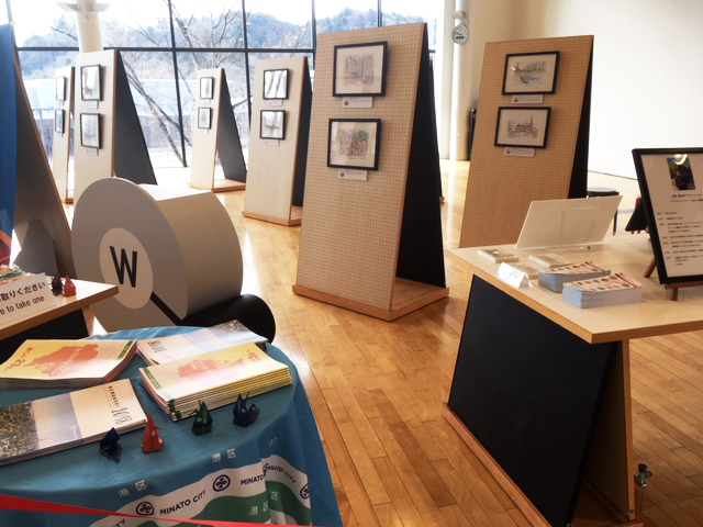 港区では、仙台市国際センター駅 市民交流施設「青葉の風テラス」で、3月19日~21日の3日間、港区の観光PRを実施しました。展示品の中で、浜松町・芝・大門マーチング委員会が所有のイラスト風景画 26点の展示紹介も行いました。