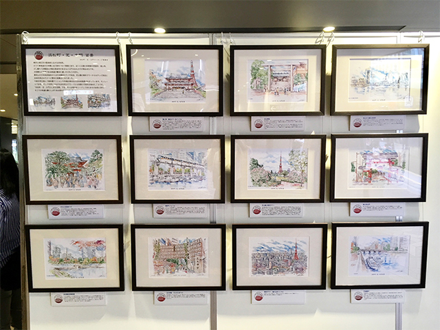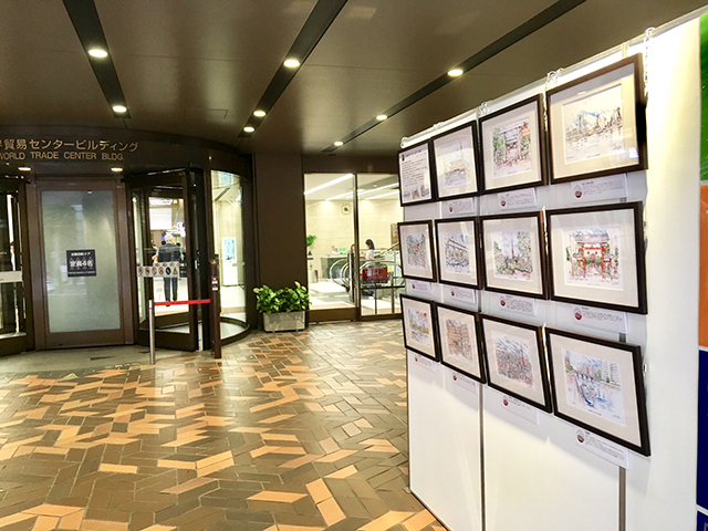 浜松町・芝・大門マーチング委員会では、2018年9月11日(火)~21日(金)の11日間、世界貿易センタービル入口前で開催の浜松町駅西口地区まちづくり紹介イベントで所有するイラスト風景画 11点の展示をご紹介いただきました。