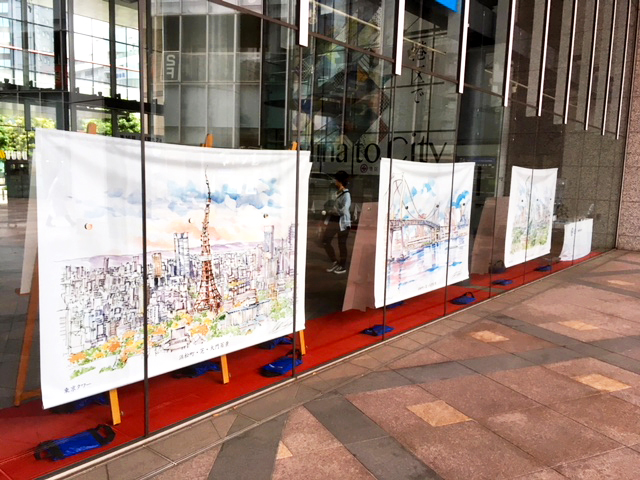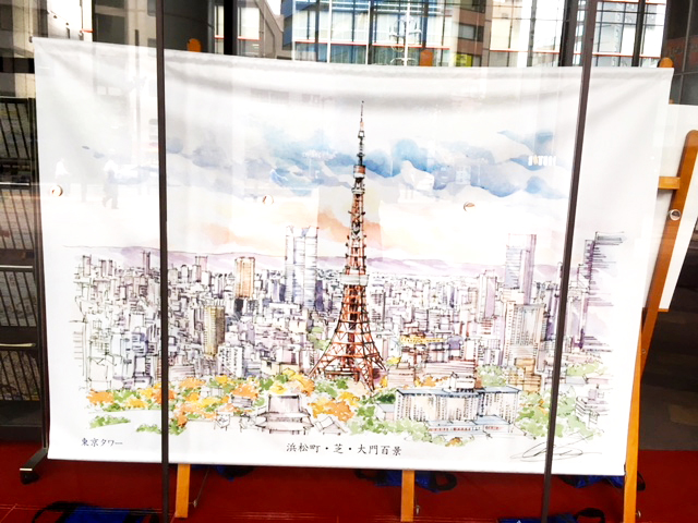 浜松町・芝・大門マーチング委員会では、東京区政会館1階ロビーにおいて開催の港区観光プロモーション展示の中で、当会の百景イラストの展示をご紹介いただいております。