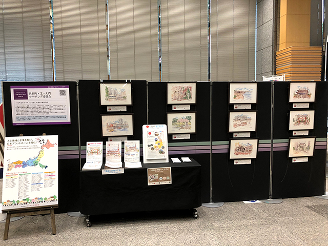 浜松町・芝・大門マーチング委員会では、港区より平成29年度「MINATOシティプロモーションクルー認定事業-C区分」を受けており、今年も区役所本庁舎1階ロビーにおいて、当会の取組み概要と百景イラストの展示をご紹介いただきました。