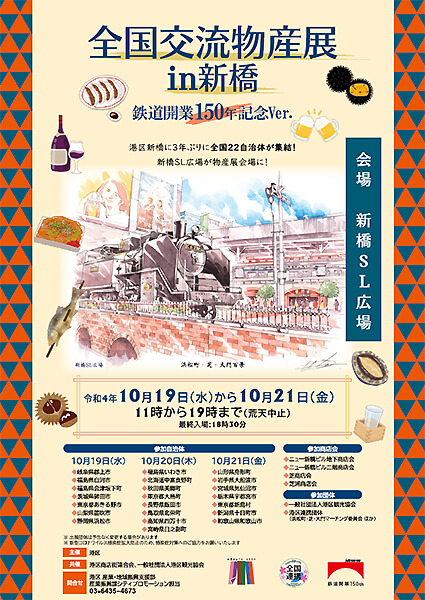 浜松町・芝・⼤門マーチング委員会は、港区が主催の「全国交流物産展 in 新橋」に、港区連携団体として出展いたします トップ浜松町・芝・大門マーチング委員会とは浜松町・芝・大門百景赤坂・六本木百景オリジナルグッズ浜松町・芝・大門マーチング委員会の活動報告イベントのご紹介お問い合わせニュース・お知らせ一覧 浜松町・芝・大門マーチング委員会は、港区が主催の「全国交流物産展 in 新橋 2022」に、港区連携団体として出展いたします。 開催の概要 名称 全国交流物産展 in 新橋 2022 会期 2022年10月19日(⽔)〜21日(⾦) 11:00〜19:00 会場 JR新橋駅 ⻄⼝SL広場 出展ブース 港区連携団体(10月19日のみ) 出展内容 マーチング委員会活動の紹介、イラスト展示、ポストカードの販売 対象 一般 主催 港区 入場 無料 お問い合わせ先 浜松町・芝・⼤門マーチング委員会(コニカミノルタジャパン株式会社内) TEL:090-2428-4128 担当:日比野 イベントのご紹介へ戻る トップ 浜松町・芝・大門マーチング委員会とは 浜松町・芝・大門百景赤坂・六本木百景 オリジナルグッズ 浜松町・芝・大門マーチング委員会の活動報告 イベントのご紹介 お問い合わせ ニュース・お知らせ一覧
