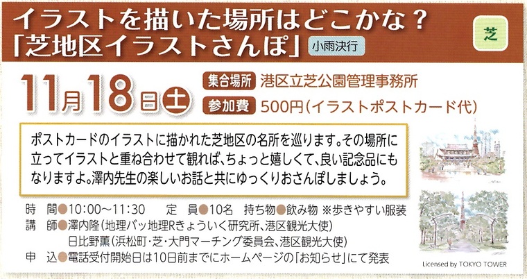 当会の日比野は、港区立芝公園の「芝地区イラストさんぽ」の講師を務めました トップ浜松町・芝・大門マーチング委員会とは浜松町・芝・大門百景赤坂・六本木百景オリジナルグッズ浜松町・芝・大門マーチング委員会の活動報告イベントのご紹介お問い合わせニュース・お知らせ一覧 2023年11月18日(土)区立芝公園にて行われた「芝地区イラストさんぽ」の講師を観光大使の澤内隆氏とともに「イラストで描いた場所さがし!!」という内容で務めました。 開催当日の様子 イベントのご紹介へ戻る トップ 浜松町・芝・大門マーチング委員会とは 浜松町・芝・大門百景赤坂・六本木百景 オリジナルグッズ 浜松町・芝・大門マーチング委員会の活動報告 イベントのご紹介 お問い合わせ ニュース・お知らせ一覧
