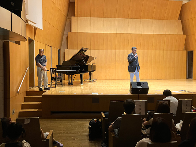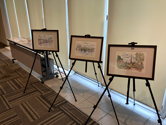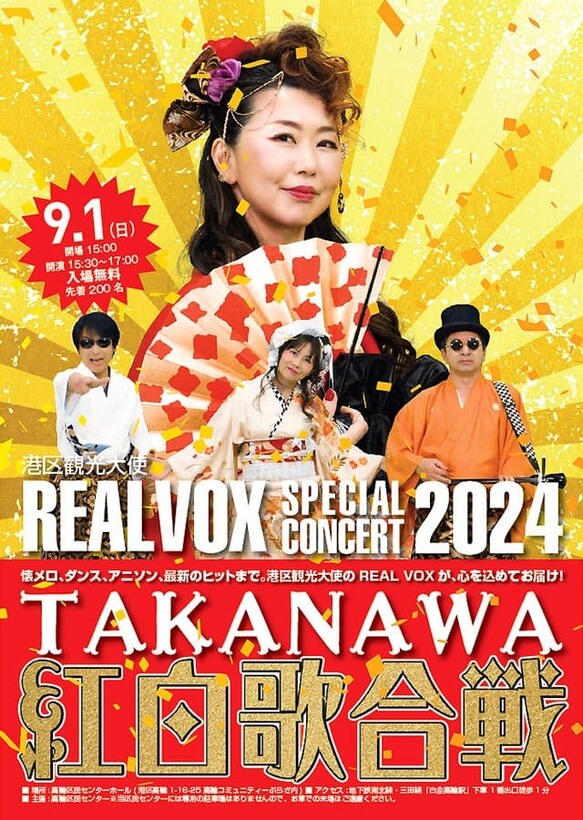 2024年9月1日(日)高輪区民センターにて港区観光大使REAL VOXのコンサートが行われ、会場入り口で百景イラストの展示を行いました。港区観光大使の当会日比野は同じ観光大使の澤内隆様とご一緒に観光大使クイズを行いました。