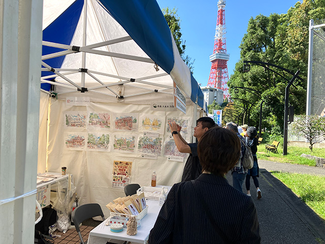 2024(第43回)みなと区民まつりに港区観光大使文化祭実行委員会ブースで、まちなみイラストを展示しました【開催終了】
