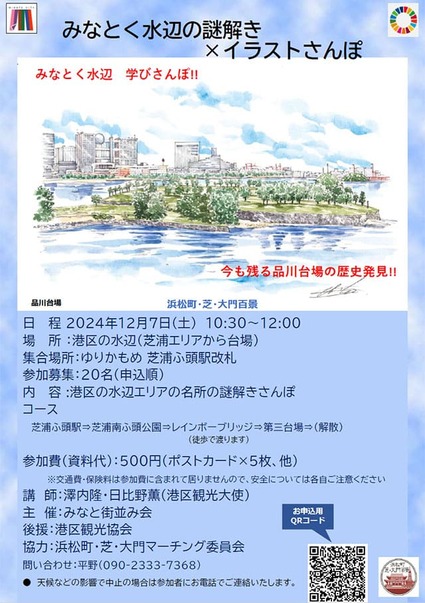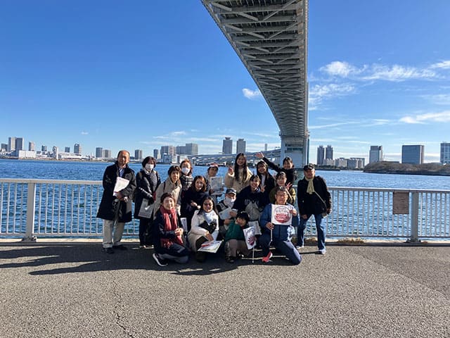 みなと街並み会が主催のイベント「みなとく水辺の謎解き × イラストさんぽ」に協力しました トップ 浜松町・芝・大門マーチング委員会とは浜松町・芝・大門百景 赤坂・六本木百景オリジナルグッズ 浜松町・芝・大門マーチング委員会の活動報告 イベントのご紹介 お問い合わせ ニュース・お知らせ一覧 2024年12月7日(土)お台場エリアにて、みなと街並み会が主催のイベント「みなとく水辺の謎解き×イラストさんぽ」に協力しました。 最初は芝浦南ふ頭公園で港の景色を堪能 レインボーブリッジを渡ってお台場へ 立ち入り禁止の第六台場も間近に見れます これから向かう第三台場 第三台場に到着 イベントのご紹介へ戻る トップ 浜松町・芝・大門マーチング委員会とは 浜松町・芝・大門百景赤坂・六本木百景 オリジナルグッズ 浜松町・芝・大門マーチング委員会の活動報告 イベントのご紹介 お問い合わせ ニュース・お知らせ一覧