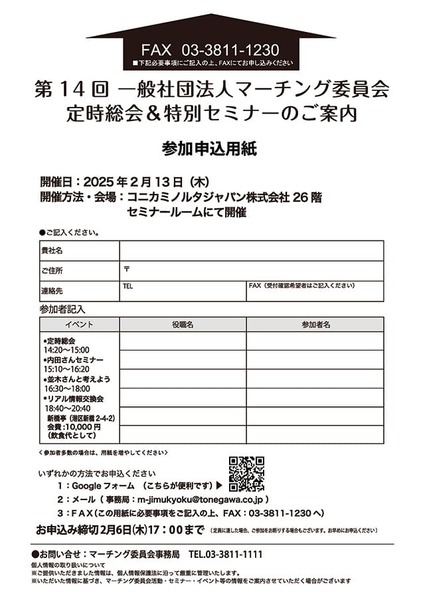 第14回一般社団法人マーチング委員会の定時総会をコニカミノルタジャパン26階セミナールームにて行いました【開催終了】
