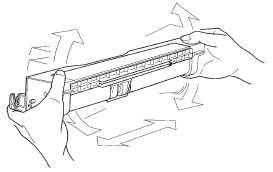 新しいトナーカートリッジを数回振ってから、前の手順で外したドラムカートリッジに新しいトナーカートリッジに取り付けてください。