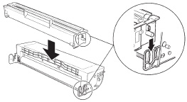 ドラム、トナーカートリッジを本機に取り付けます。ドラム、トナーカートリッジの矢印と本機の矢印が合うように取り付けてください。