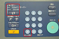 キーを押し、液晶画面をコピー画面にします。次にカウンタ表示キーを押します。