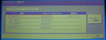 プリンターで印字した総枚数になります。 - スキャナーカウンタ