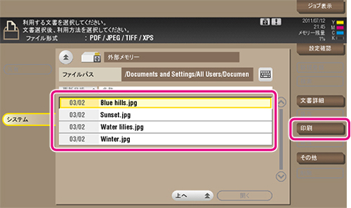 本機のUSBポートにUSBメモリーを差込むだけで、ファイルを直接印刷できます。