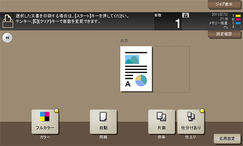 4 必要に応じて印刷設定を変更し、操作パネルのスタートを押します。