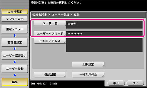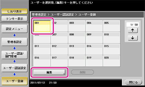 7 [ユーザー認証設定] - [ユーザー登録] を選びます。
