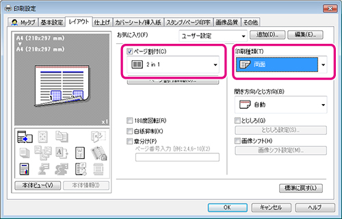 複数のページを1枚の用紙の同じ面に印刷したり、用紙の両面に印刷したりすることで、用紙を節約できます。