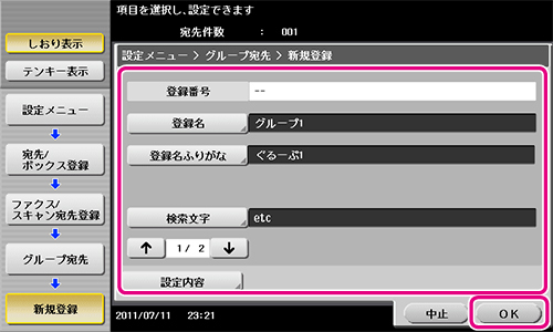 ●グループ宛先を登録する