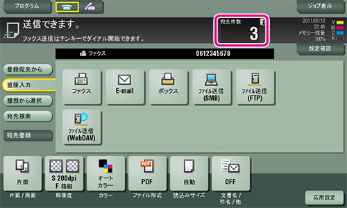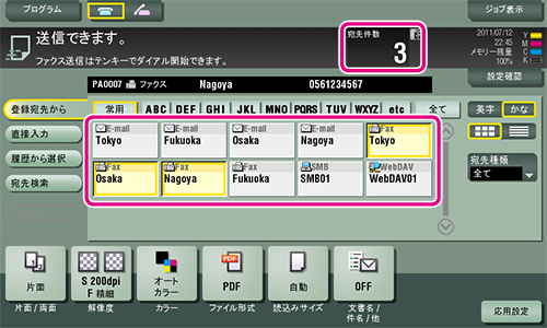 短縮宛先は複数選べます。[宛先件数] には選択した宛先の件数が表示されます。
