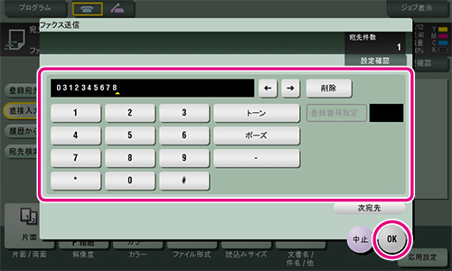 [設定確認] をタップすると、入力した宛先の詳細情報を確認したり、宛先を解除したりできます。