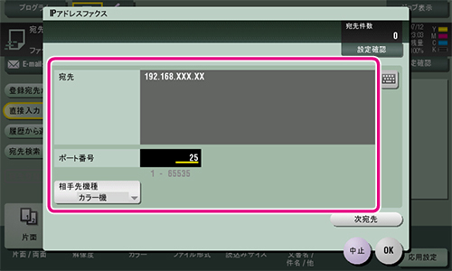 ● IPアドレスファクスを送信する