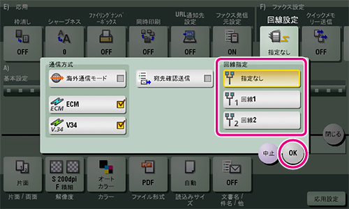 4 [回線指定] で回線を選び、[OK] をタップします。