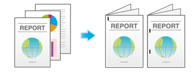 コーナーまたは、2点でステープルとじができます。配布資料などを印刷するときに便利です。