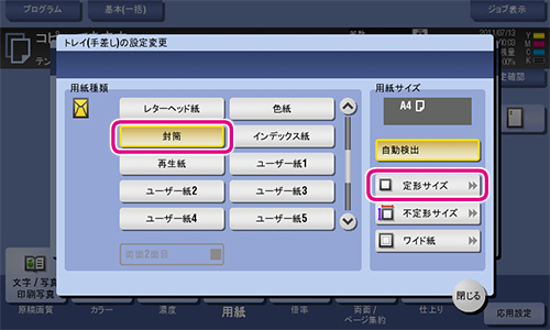 封筒にはさまざまなサイズがあります。セットした封筒に合わせて適切なサイズを指定してください。