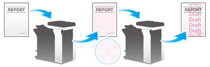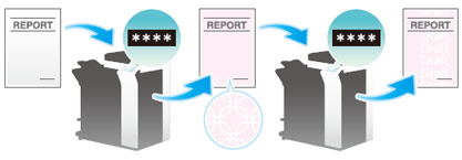 パスワードコピーは、不正コピー防止用に、「社外秘」や日付などの隠し文字を背景の中に目立たないように印字するコピープロテクト機能に、パスワードコピー用のパスワードを埋め込んで印字する機能です。