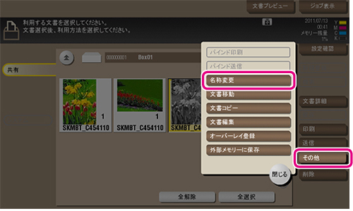 ボックスに保存されているファイルの名前は、ファイル送信のときのファイル名になります。ファイル名を変更するときは、送信先のサーバーの条件を考慮して変更することをおすすめします。