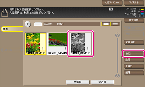 ボックスに保存したファイルの色を変更して印刷したり、解像度を変更して送信したりできます。