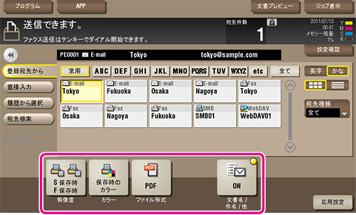 5 宛先を設定し、ファクス/スキャンの各機能の設定を変更します。