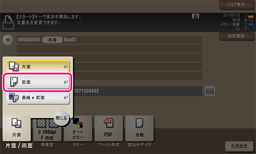 原稿を読込むときに、[両面] に設定すれば保存できます。