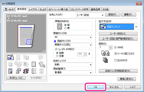 ユーザー認証が成功すると、ファイルが印刷されます。